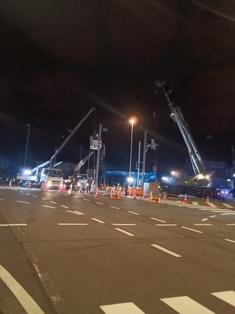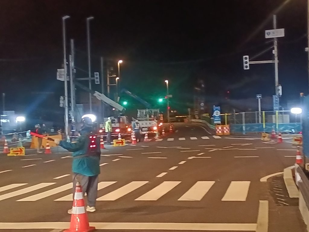 令和7年11月28日 夜間作業で紫竹山交差点信号切替えに伴う交通誘導警備を19名体制で行ないました。